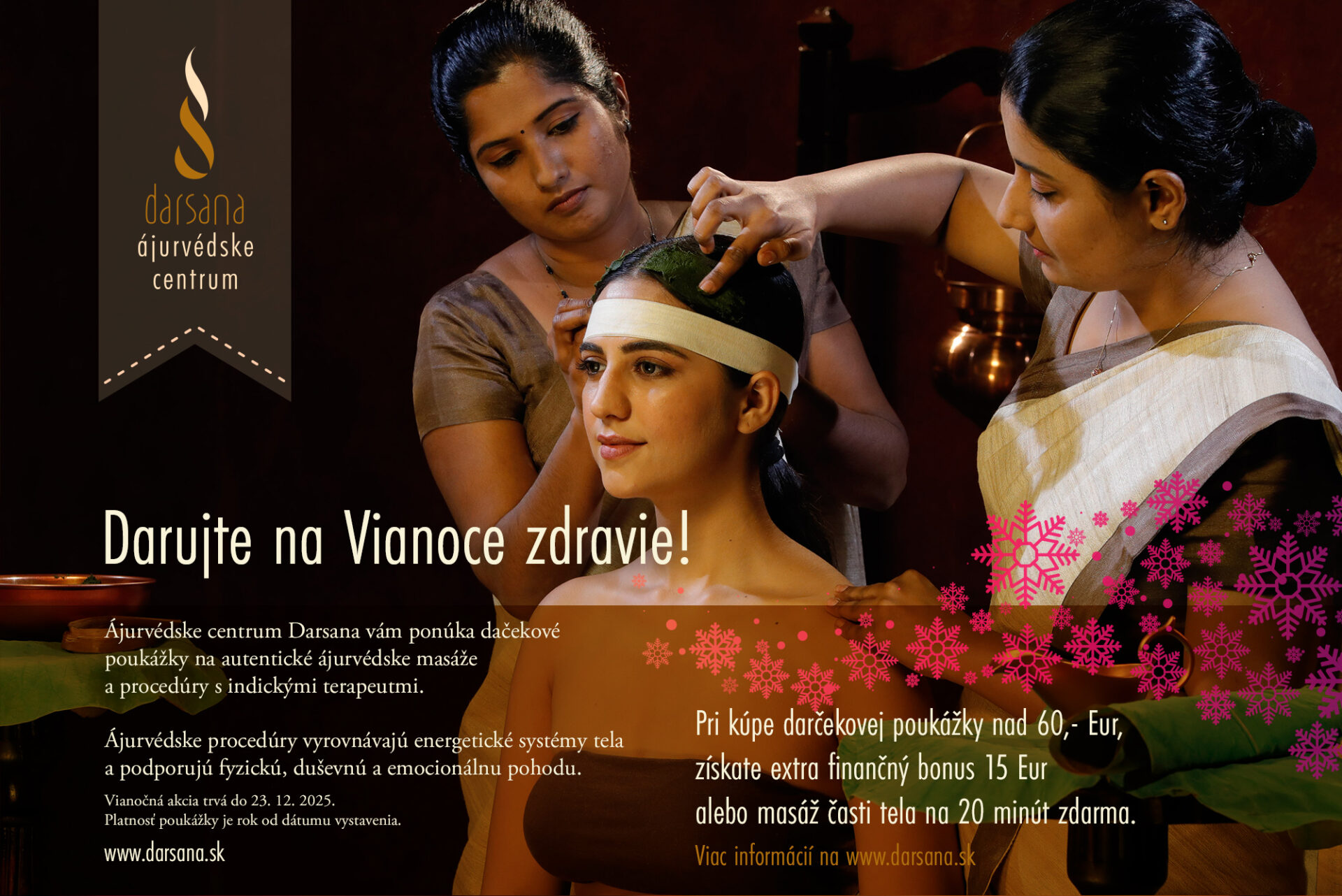 This Christmas promotion for the purchase of gift vouchers applies to Darsana centers in Bratislava and Piešťany.